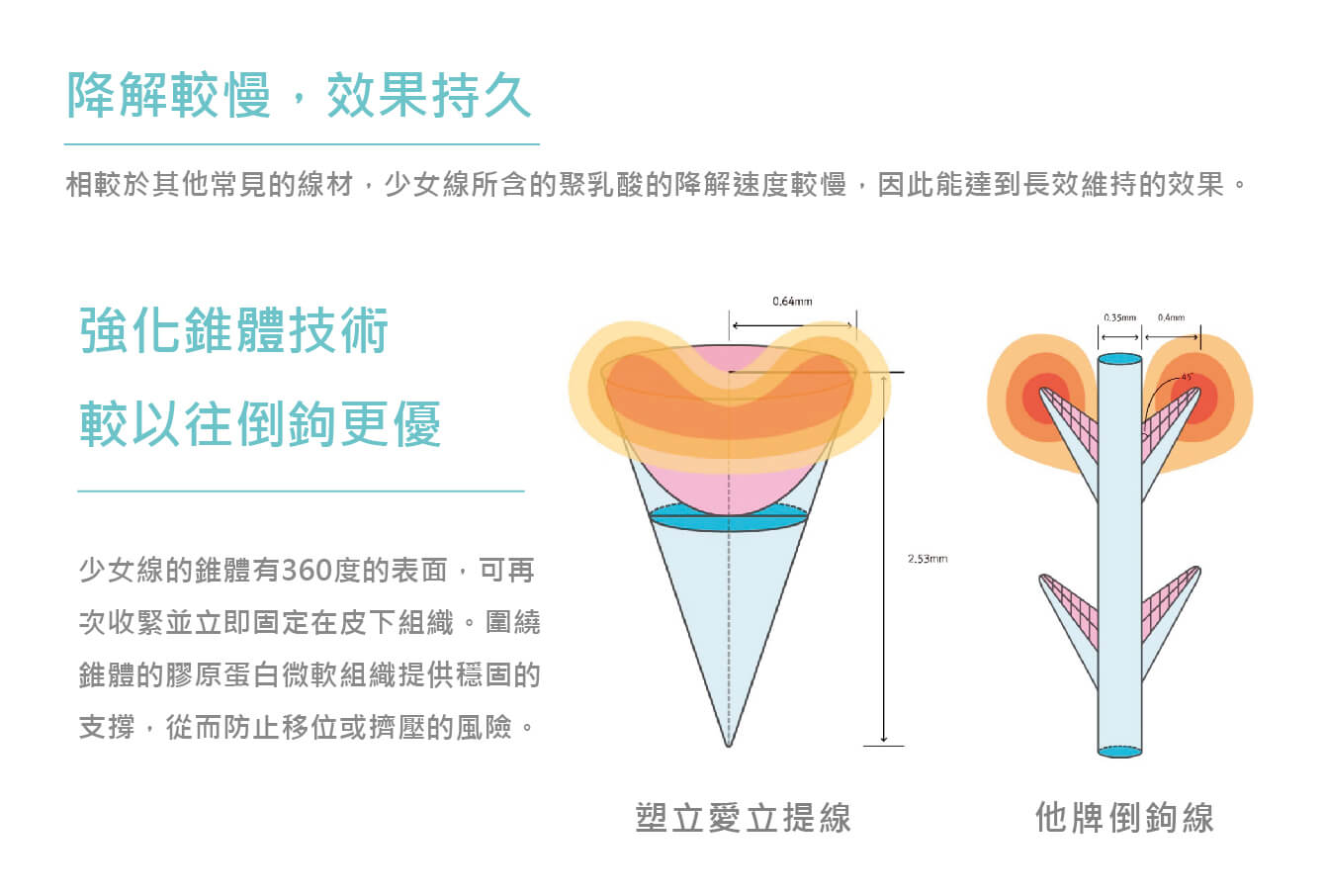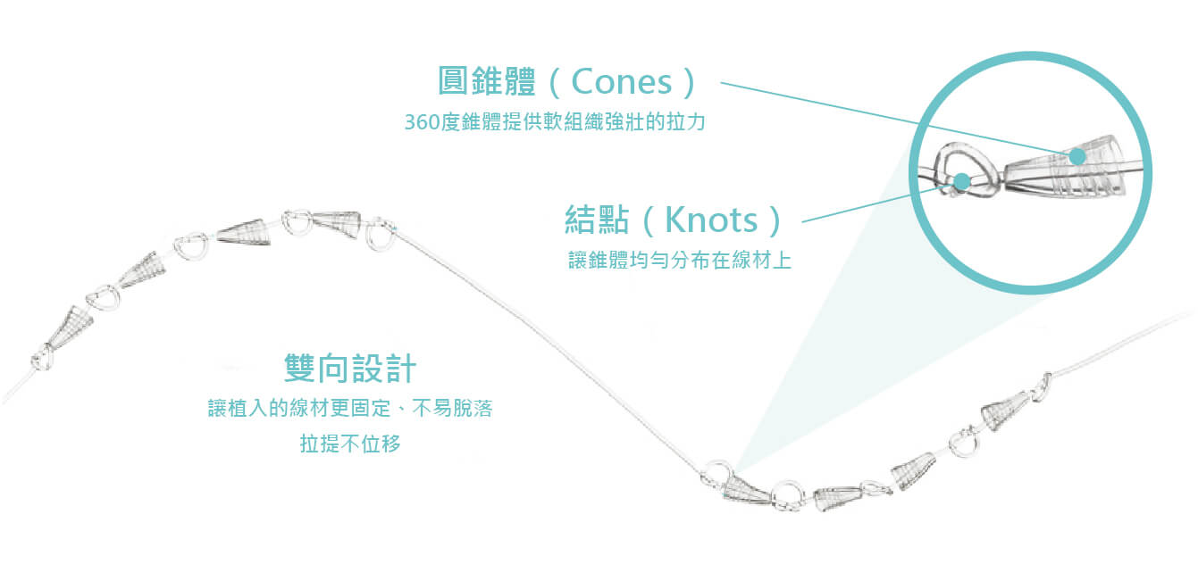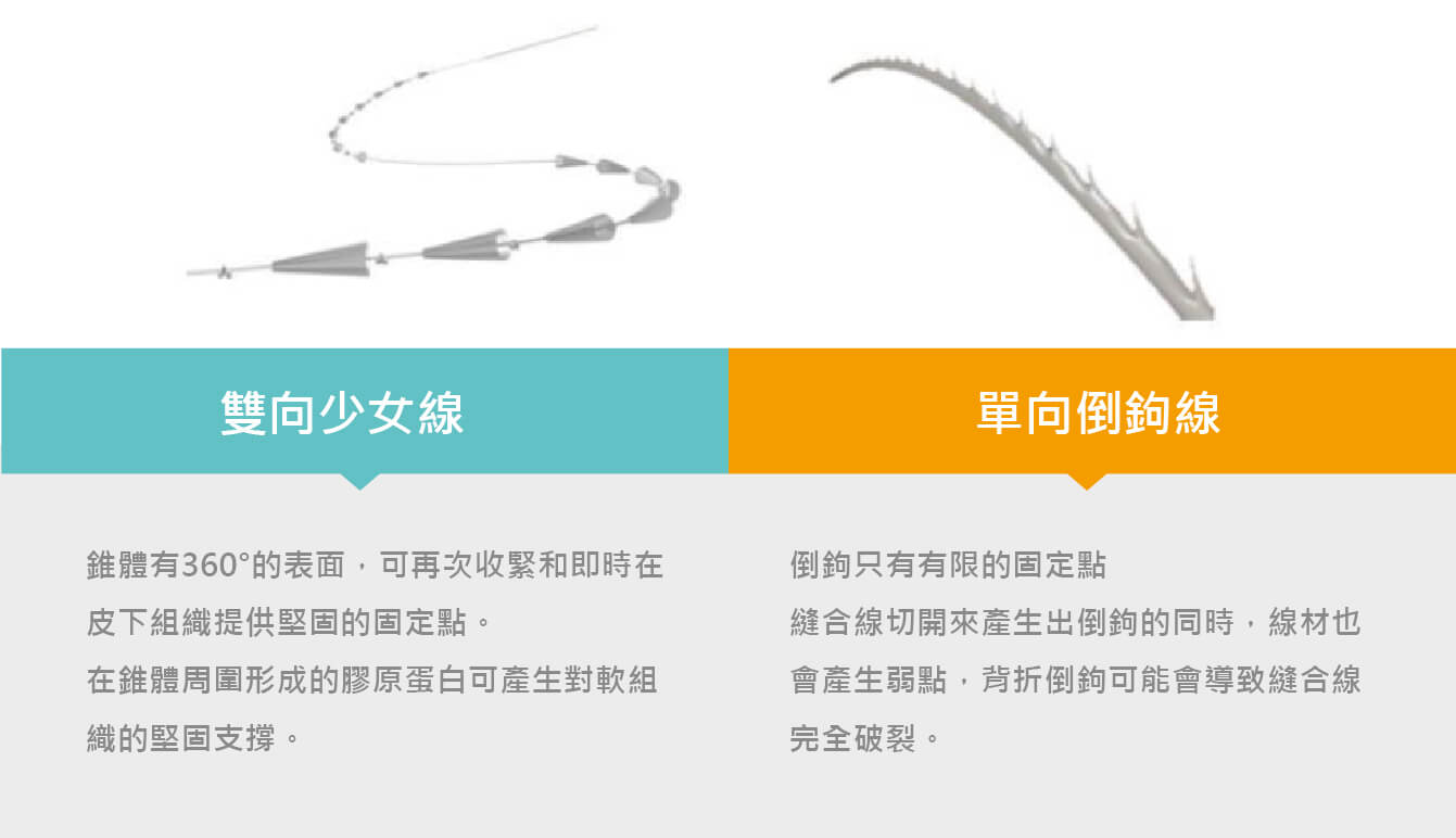以PLGA為主要成份的雙向錐體,拉提和壓縮臉部組織。