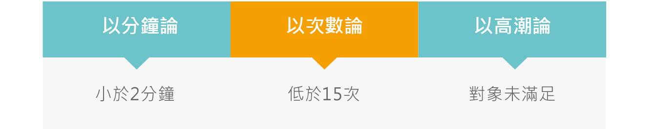 2.以次數論→有人用『抽送次數』來計算,低於15次就算早洩。
